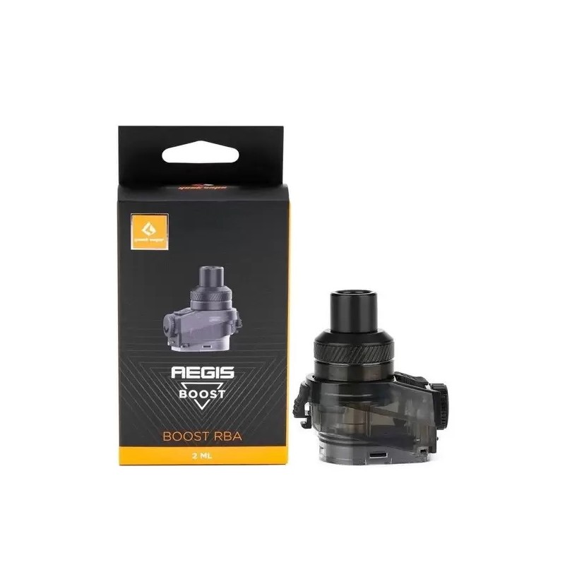 La base RBA Aegis Boost de GeekVape permettra d'équiper votre pod Aegis Boost d'un plateau reconstructible pour fabriquer vous-même vos résistances. La base viendra se clipser à l'emplacement de la cartouche classique. Montage simple coil (une résistance), remplissage par le haut, réservoir de 2 mL, airflow réglable et drip-tip au format 510. Vendue à l'unité, compatible avec le kit Aegis Boost.