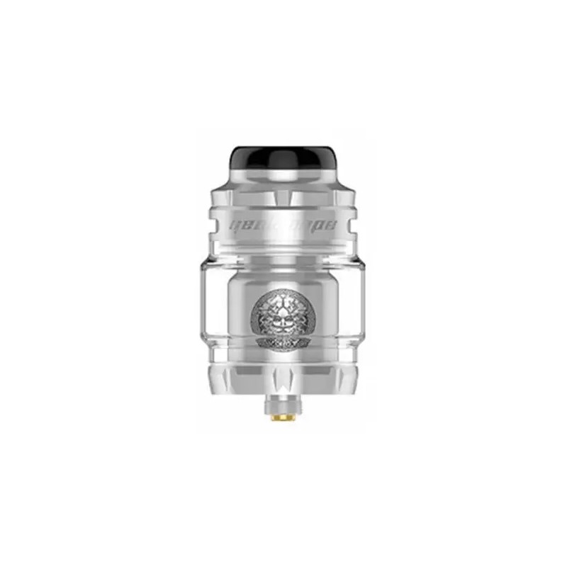 Ce superbe atomiseur RTA de 25 mm de diamètre reprend le design de son illustre prédécesseur avec sa tête de Zeus gravée sur la chambre de l'atomiseur !