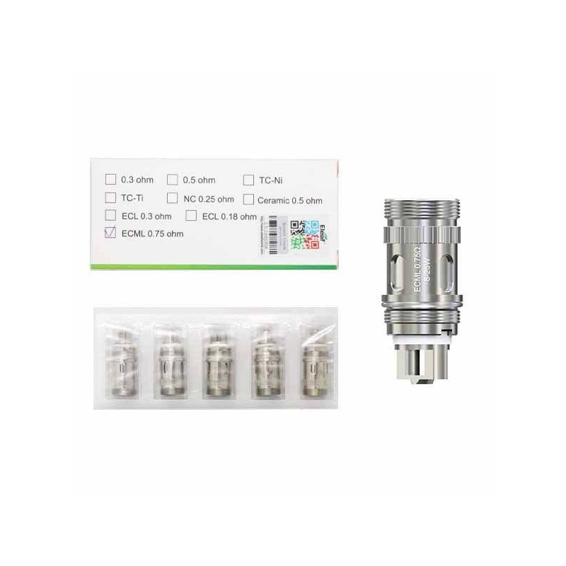 • Contenu : 2x5 Eleaf Tête d'atomiseur ECML 0.75 ohm